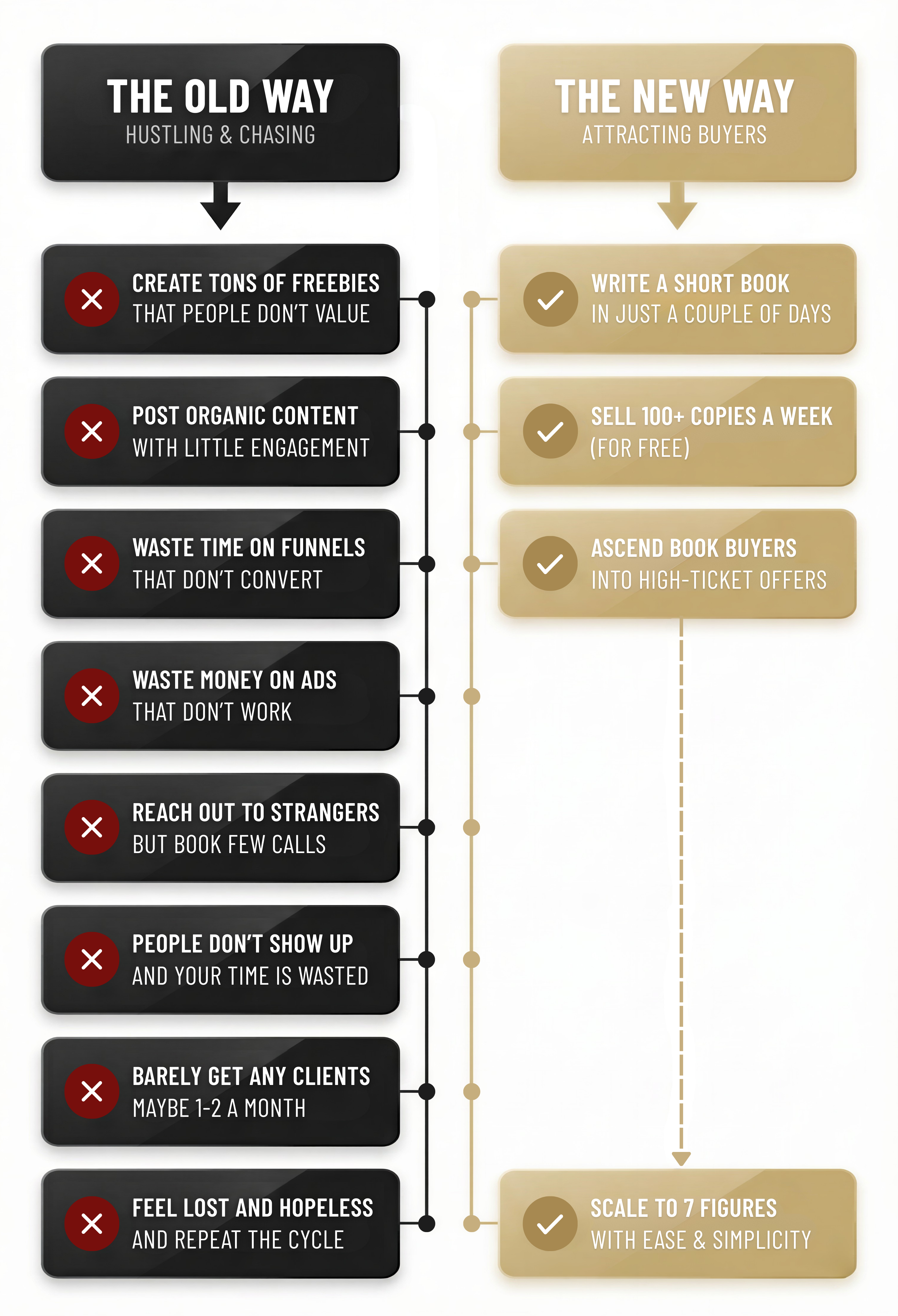 Finally, you use systems that ascend these book buyers—completely automatically—into your high-ticket products and services (think coaching and consulting offers).