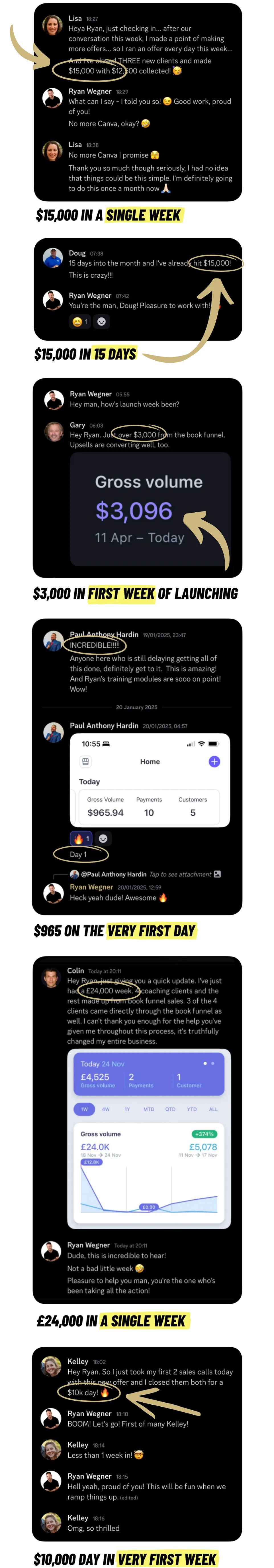I’m able to effortlessly and predictably sign new high-ticket clients every single week without having to post content every day, risk all of my money on ads, or chase prospects around, desperately trying to get them to schedule calls with me.