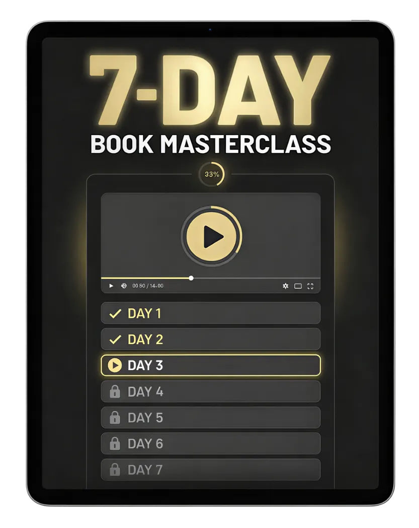 Discover how to write a short book, sell 100+ copies per week & turn them into high-ticket clients, so you can finally build the business you dream of – without wasting a ton of money on ads or chasing any prospects around.