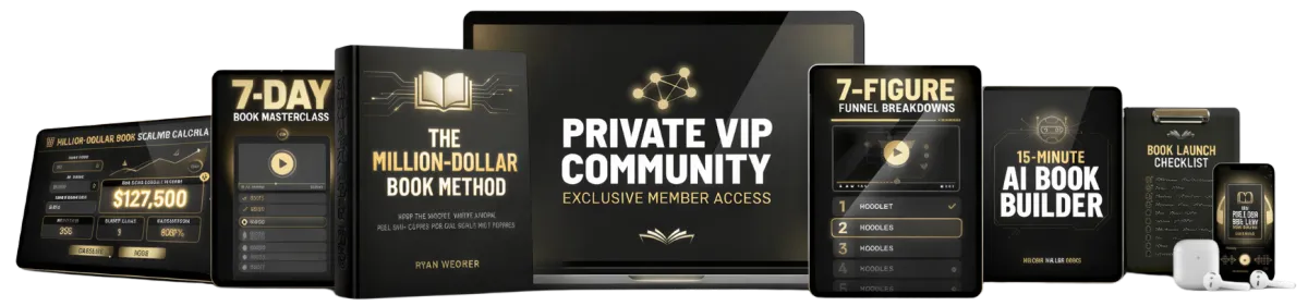 The Million-Dollar Book Method is a cutting-edge client acquisition system that we've used to build three 7-figure businesses. It consists of 3 key steps. First, you write a book. It can be long or short – that's up to you. The second step is to use the Million-Dollar Book funnel to get people to buy your book – attracting dozens of customers every day while recouping your ad spend immediately. Then the final step is to upgrade some of these people into your high-ticket programs at 100% profit.